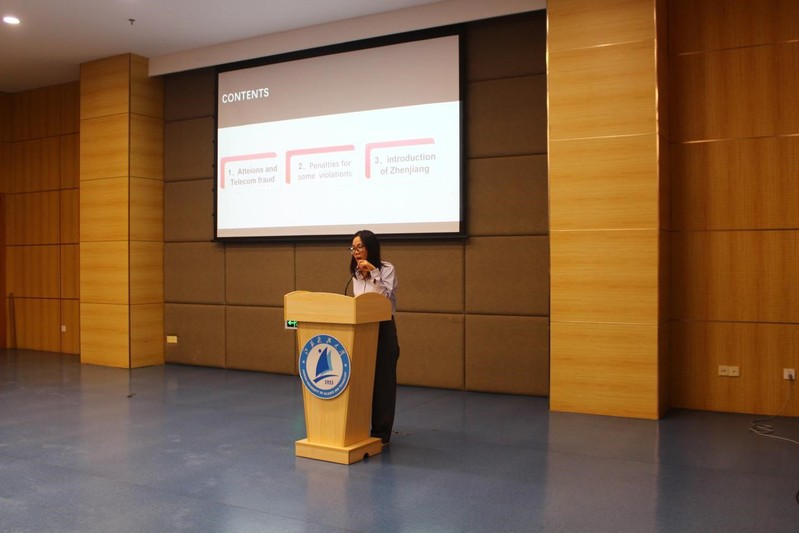 此次活动特别邀请了镇江市公安局出入境管理支队外管科科长张群、镇江市公安局交通警察支队京口大队民警周帅、江苏丹正律师事务所律师孙芬芬等专家,为留学生新生们带来了一场场精彩纷呈的讲座。